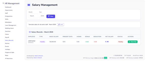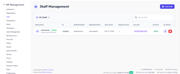 Take full control of your workforce with HRM Management, a powerful and easy-to-use Human Resource Management plugin built exclusively for WordPress. Designed for businesses of all sizes, this all-in-one solution simplifies everything from hiring to payroll — right inside your WordPress dashboard.